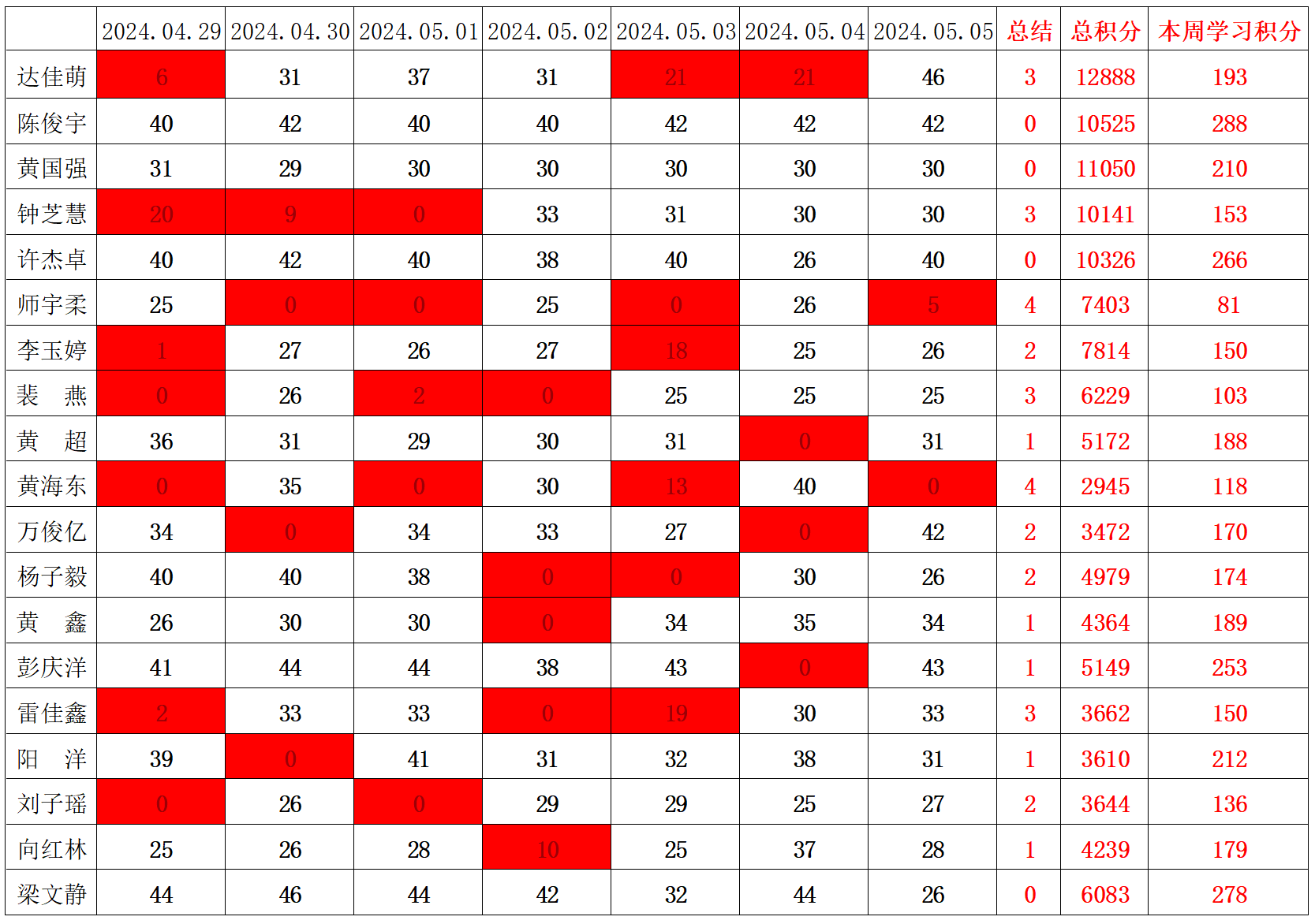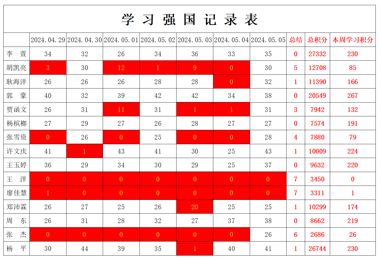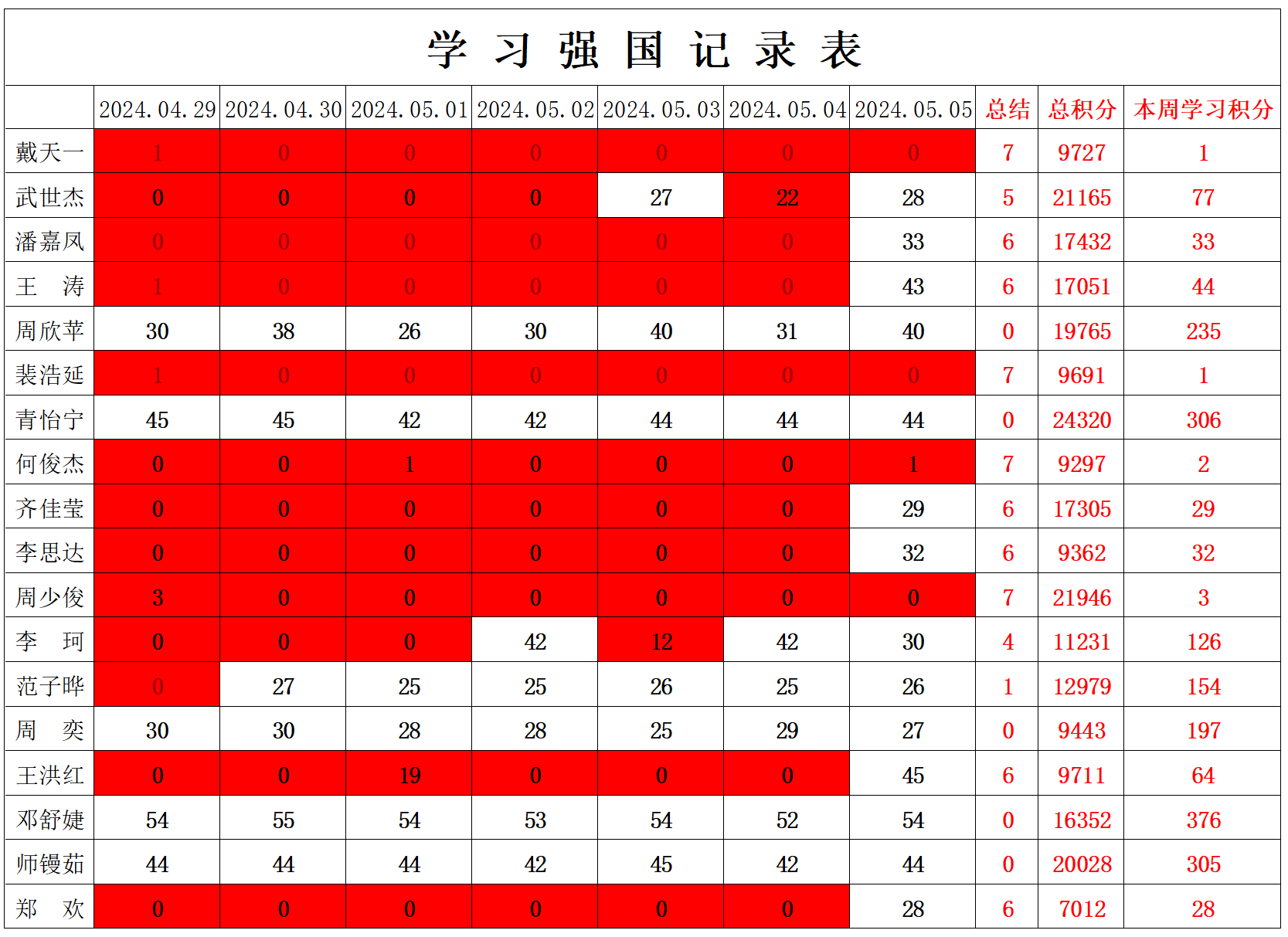 bevictor伟德官网员工党支部2023-2024学年第二学期第十周学习强国学习进度