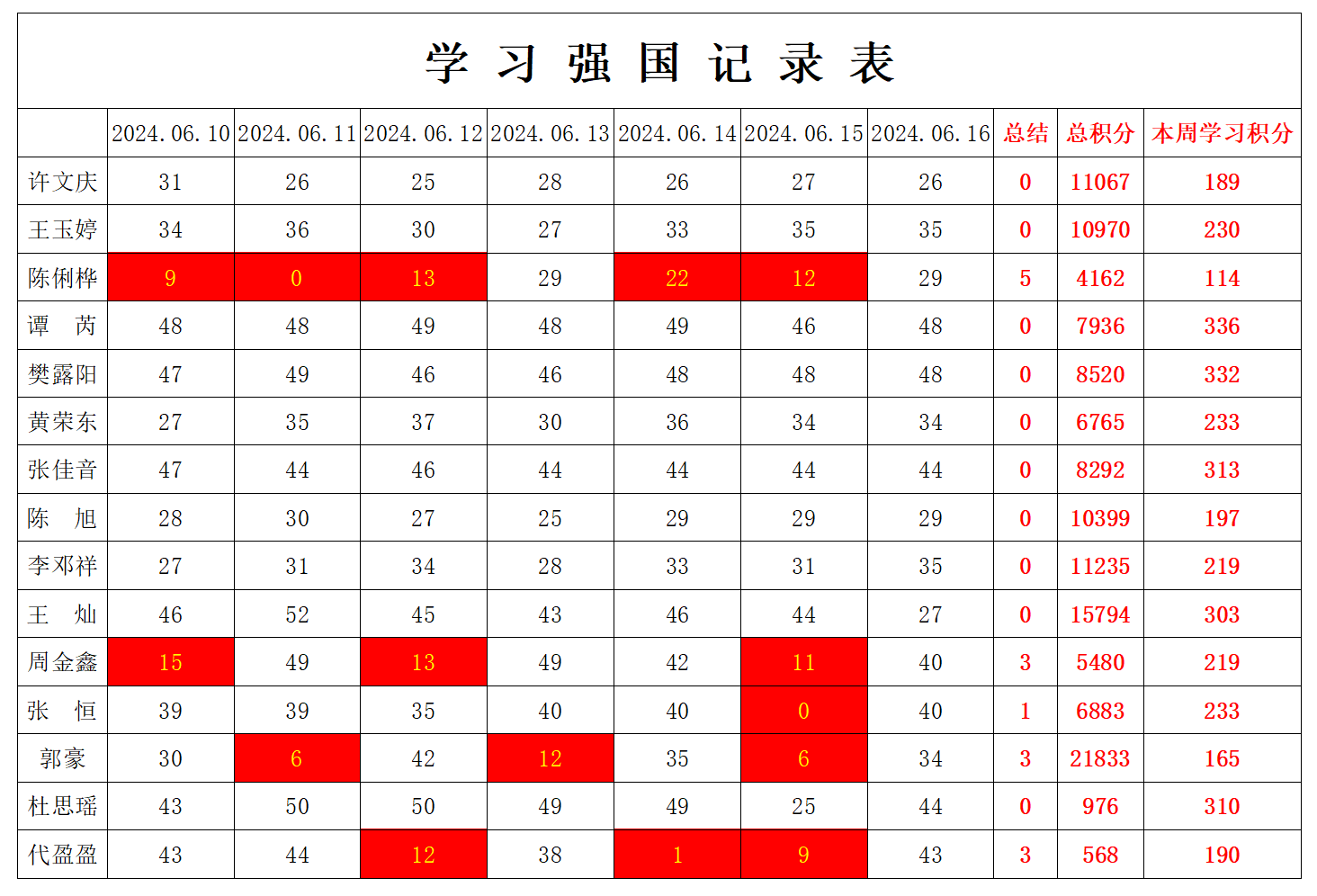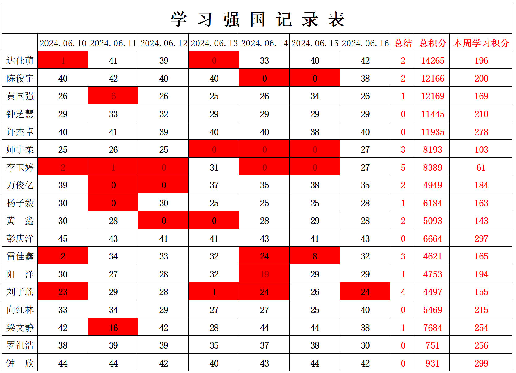 bevictor伟德官网员工党支部2023-2024学年第二学期第十六周学习强国学习进度